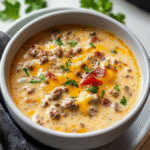Cheeseburger soup transforms the beloved flavors of a classic cheeseburger into a creamy, comforting dish. Perfect for chilly evenings or game day gatherings, this hearty soup boasts ground beef, melted cheese, and fresh vegetables in every spoonful. Easy to make and customize with your favorite toppings, this recipe is sure to become a family favorite—bringing warmth and nostalgia in every bowl.