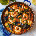 Keywords: Customize the seafood based on availability; consider adding chorizo for added flavor. For extra color, toss in peas or fresh herbs before serving. Store leftovers in an airtight container for up to three days.