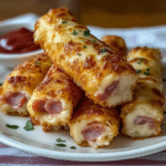 Yes, you can prepare Cheesy Ham & Cheese Sticks ahead of time! Assemble the sticks without baking them and store them in the refrigerator for up to 24 hours. If you want to freeze them, arrange the sticks on a baking sheet until firm, then place them in a freezer-safe bag. When you’re ready to serve, bake from frozen until golden brown. This makes it convenient for parties or quick snacks.