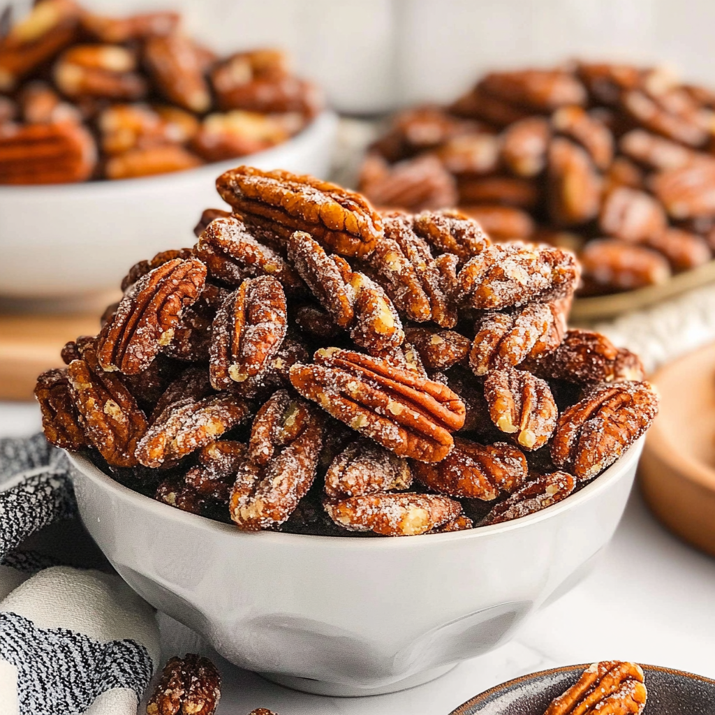 Now, picture this: every holiday season, my family gathers around the kitchen to whip up these delicious treats. It’s a tradition that brings us together as we share stories and laughs while creating something truly special. These pecans are more than just snacks; they’re the edible embodiment of warmth and celebration that everyone looks forward to year after year.