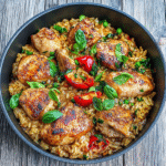 One Pot Chicken and Rice is a delightful, easy-to-make dish that combines juicy chicken thighs with fluffy rice in a savory broth. Perfect for busy weeknights or cozy family dinners, this one-pot meal delivers robust flavors and a comforting aroma that will draw everyone to the table. With minimal cleanup and endless customization options, this recipe is destined to become a favorite in your kitchen.
