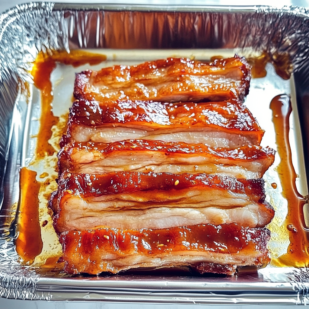 • Cut the pork belly into even pieces for uniform cooking and perfect caramelization.