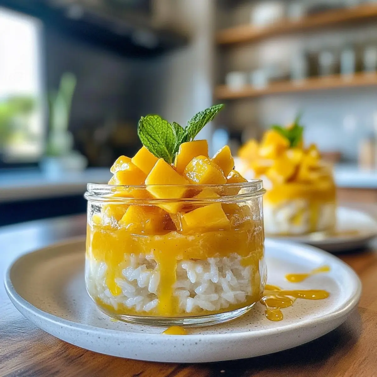 5. Assemble the Jars: In small jars, layer the coconut rice and fresh mango slices. Repeat layers until jars are filled. Drizzle with reserved coconut sauce on top for a beautiful finish.
