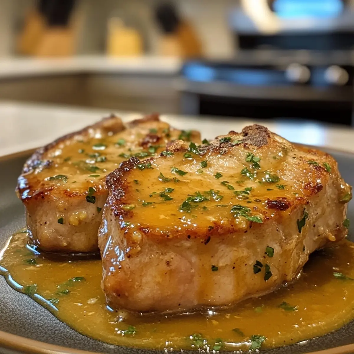 • Sear Pork Chops: Heat butter and olive oil in a skillet over medium-high heat. Sear pork chops for 3-4 minutes on each side until golden brown. Remove from skillet and set aside.