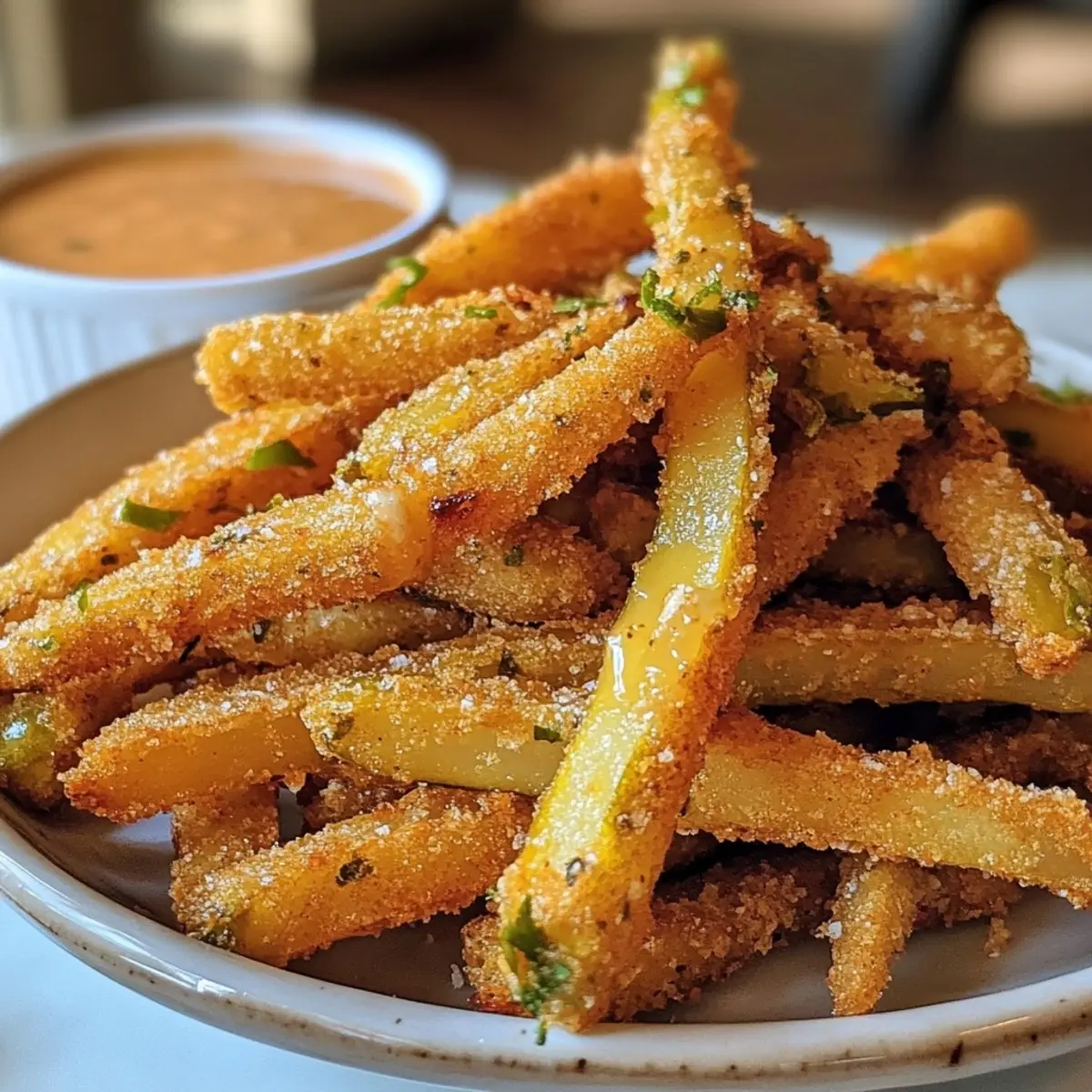 Irresistibly Crunchy Pickle Fries with Spicy Dipping Sauce