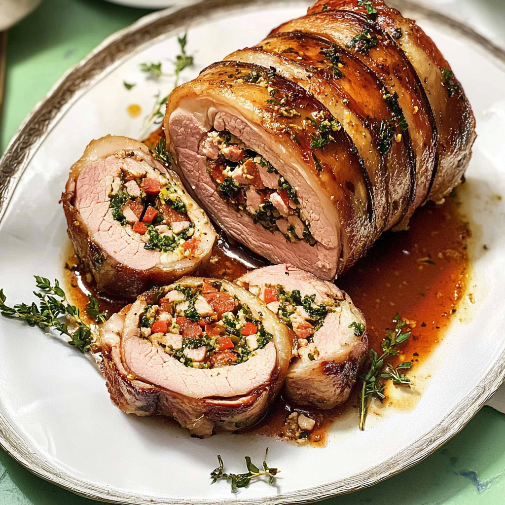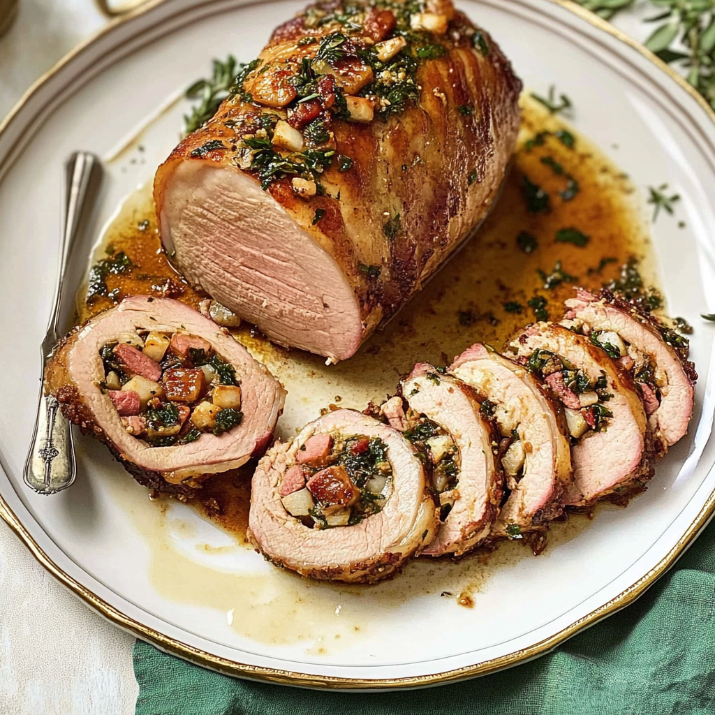 - The visual appeal of the vibrant stuffing peeking through the succulent pork makes it a showstopper on any dinner table.