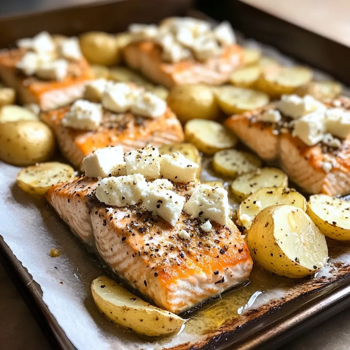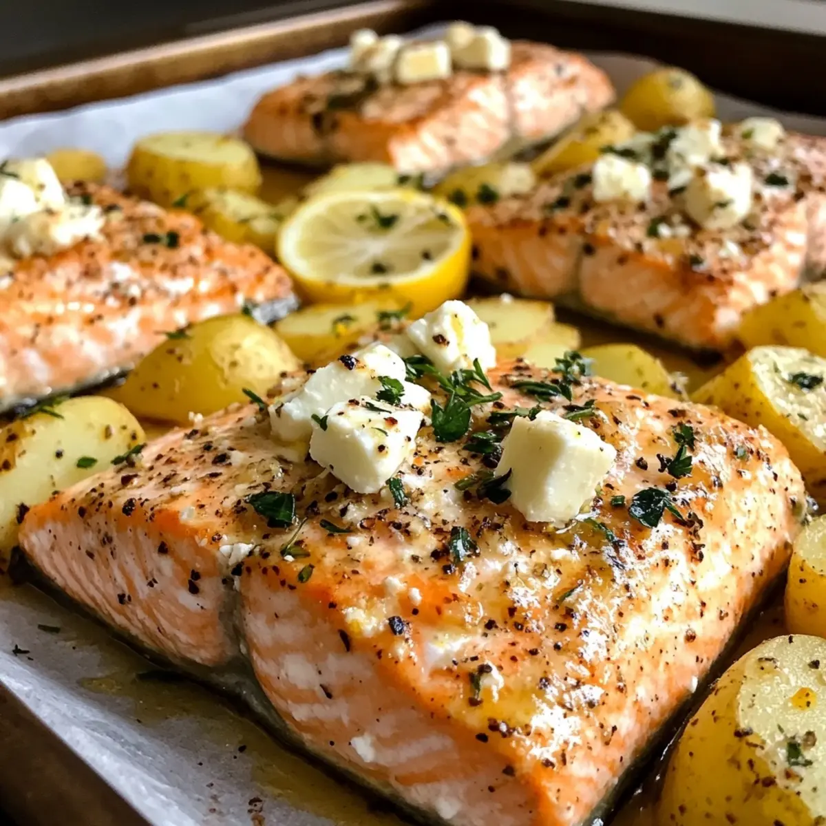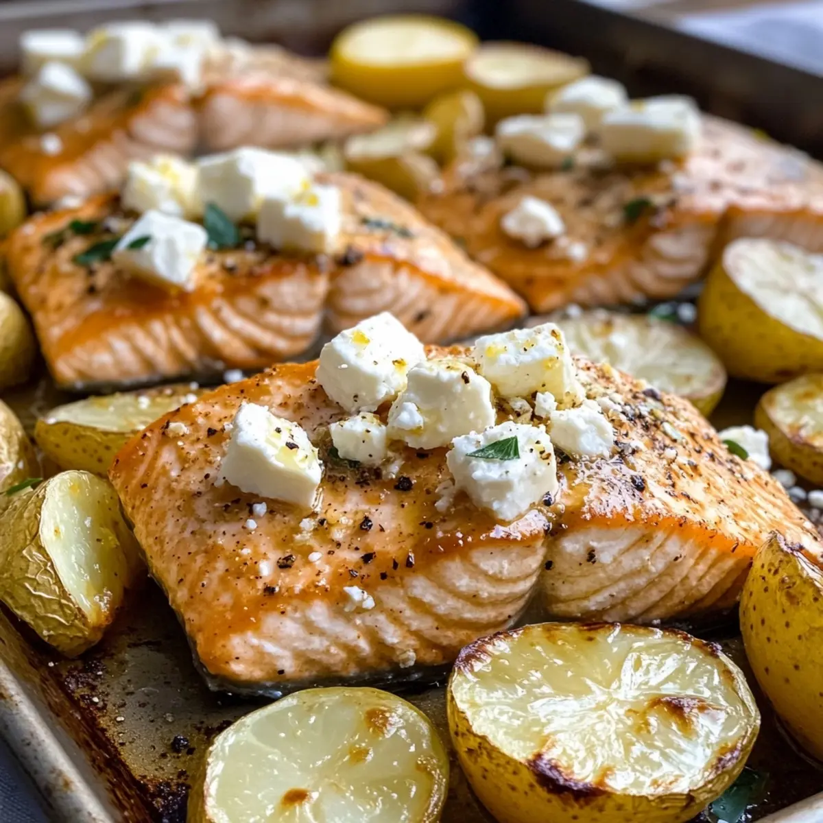 Irresistibly Easy Sheet Pan Lemon Greek Salmon with Feta & Potatoes