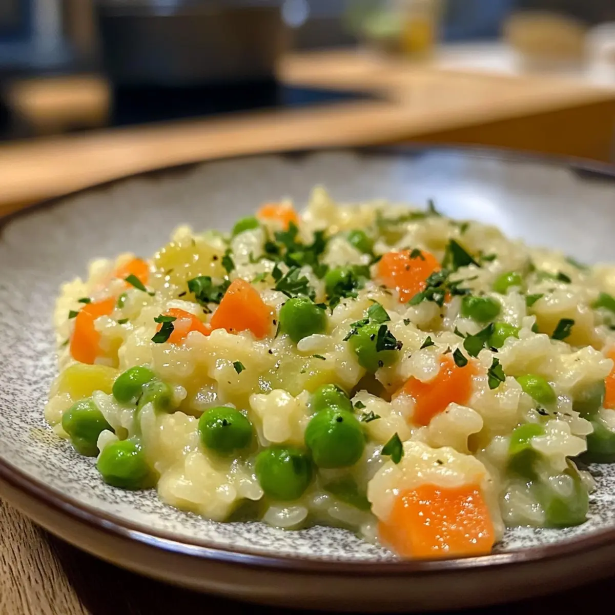 Seasonal Freshness: This risotto celebrates the vibrant flavors of spring, featuring tender asparagus, sweet peas, and crunchy carrots.