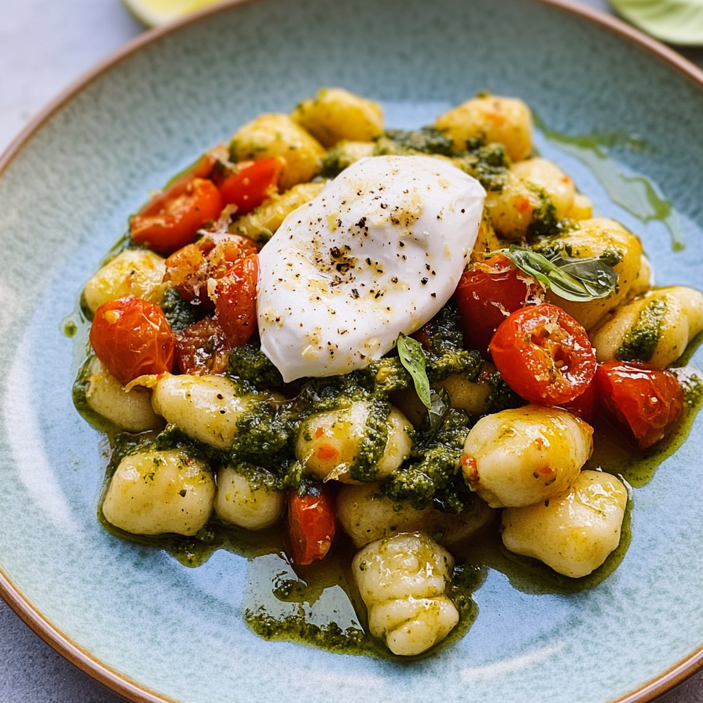 30-Minute Pesto Burrata Gnocchi with Cherry Tomatoes