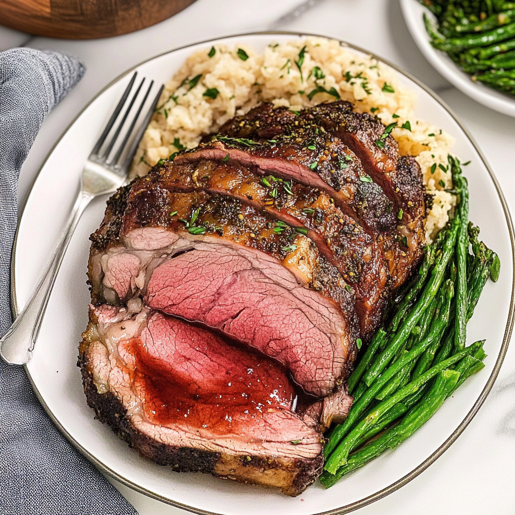 Festive Herb-Crusted Prime Rib with Red Wine Reduction
