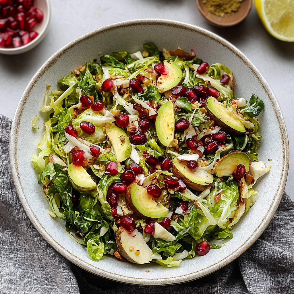 Irresistible Parmesan Brussels Sprouts Salad with Pomegranate
