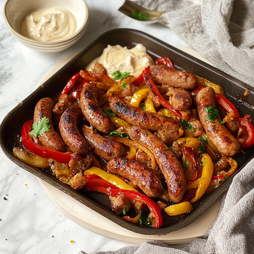 bell peppers / easy meals / family recipes / one pan dish / roasted vegetables / sausage recipe / sheet pan dinner