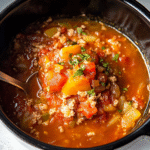 Slow Cooker Stuffed Pepper Soup is a delightful and hearty dish that brings together the vibrant flavors of bell peppers, savory ground beef, and zesty tomatoes. Perfect for chilly evenings, this comforting soup simmers effortlessly in your slow cooker, making it an ideal meal for busy weeknights or cozy family gatherings. Each bowl is not just a meal—it’s a warm hug that wraps you in nostalgia and comfort.