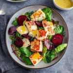 Store any leftover Beetroot & Halloumi Salad in an airtight container in the refrigerator. It will stay fresh for up to two days. To maintain the texture of the halloumi, consider reheating it gently before serving again. Keep the vinaigrette separate if possible to preserve its freshness until you’re ready to enjoy it once more.