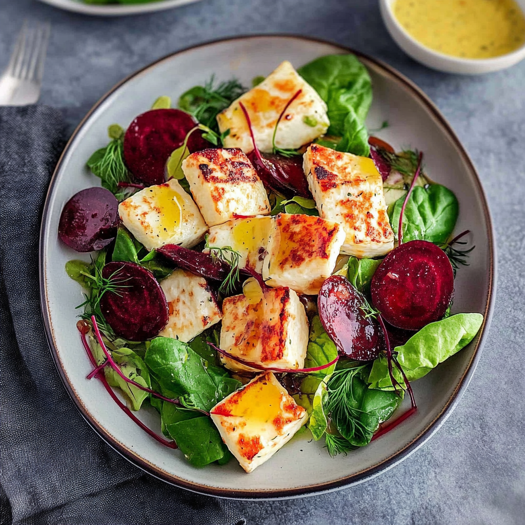 Beetroot & Halloumi Salad with Dill Vinaigrette
